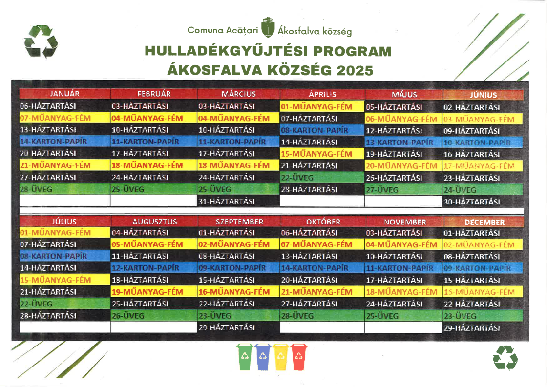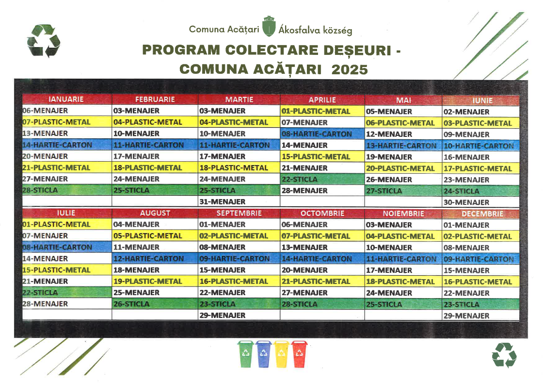 MEDIU - PROGRAM DE COLECTARE A DEȘEURILOR ÎN COMUNA ACĂȚARI