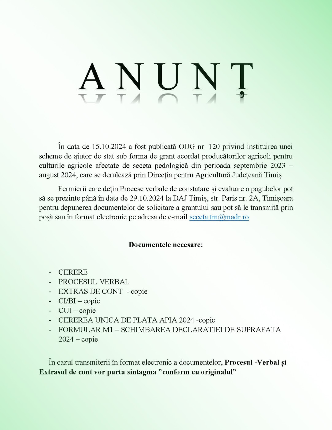 ANUNT FERMIERI - GRANTURI - SECETA PEDOLOGICA