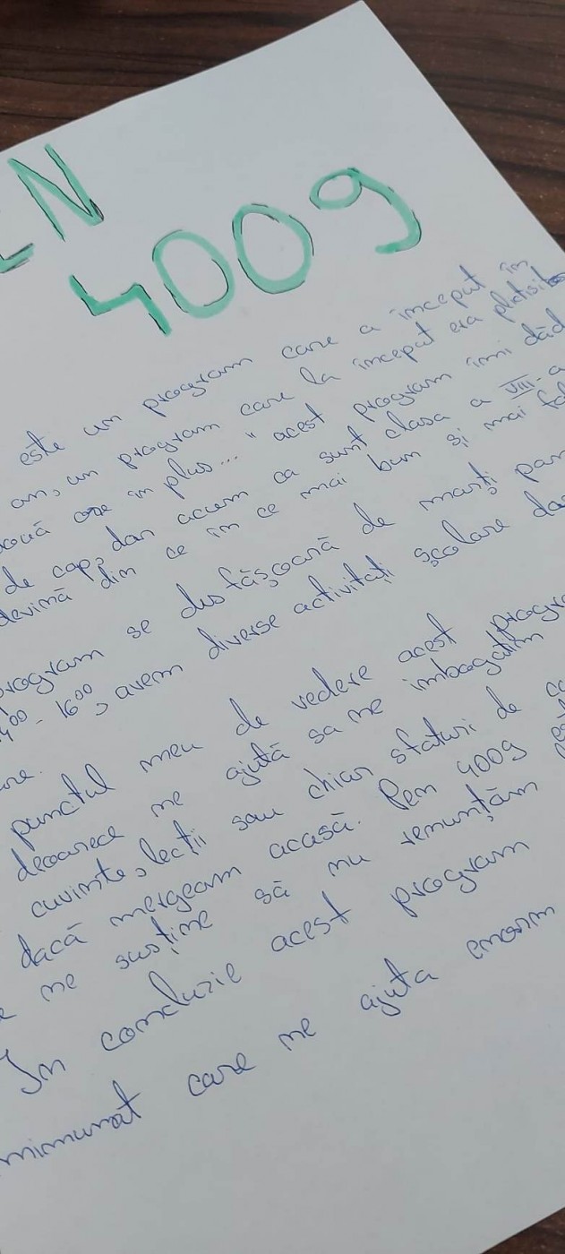 "PN 4009 este un program care ne susține să nu renunțăm la visele noastre " – U.P.B – elev în clasa a VIII – a – Școala Gimnazială Sfântul Petru - Sânpetru de Câmpie
