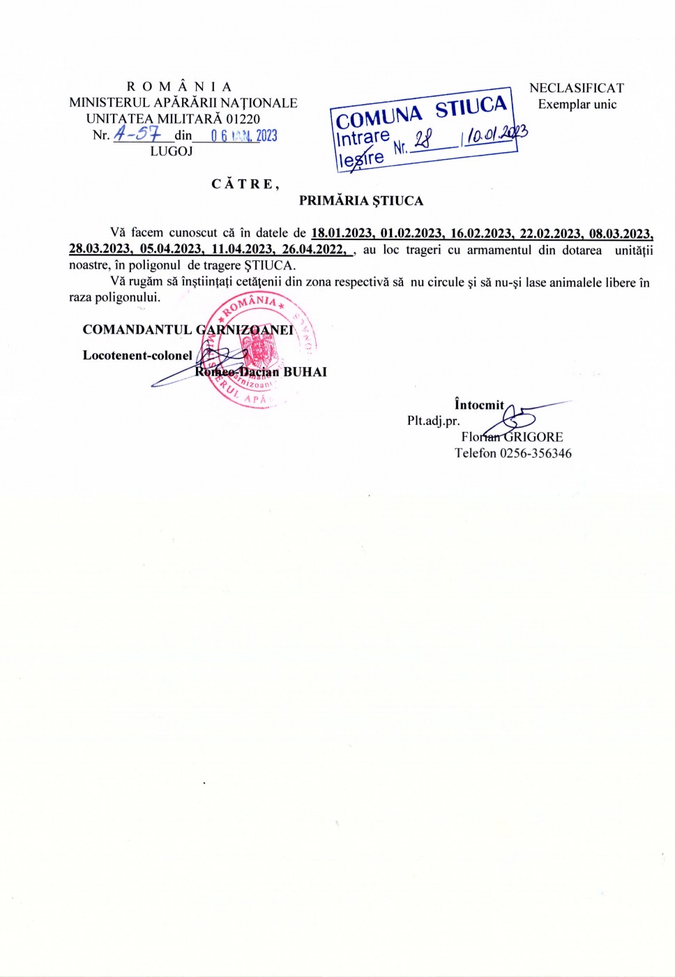 Informare tragere cu armamentul din dotarea MAN în poligonul Știuca.