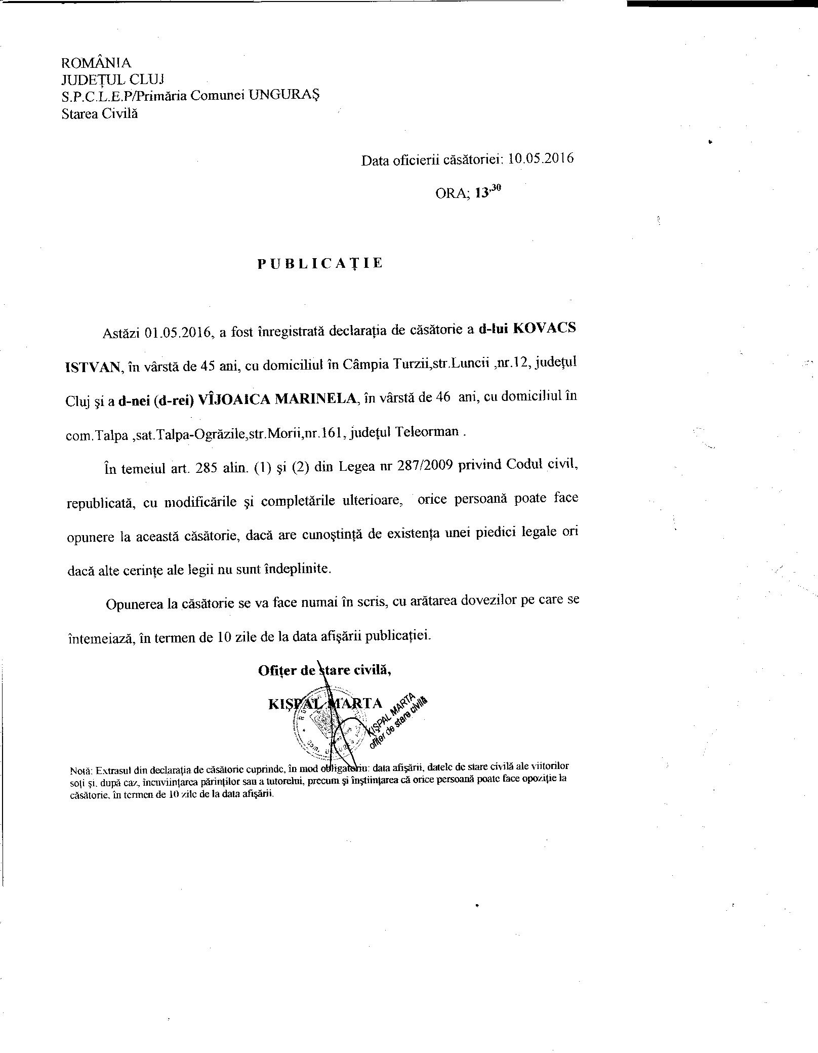 | Kovacs Istvan Vîjoaica Marinela |