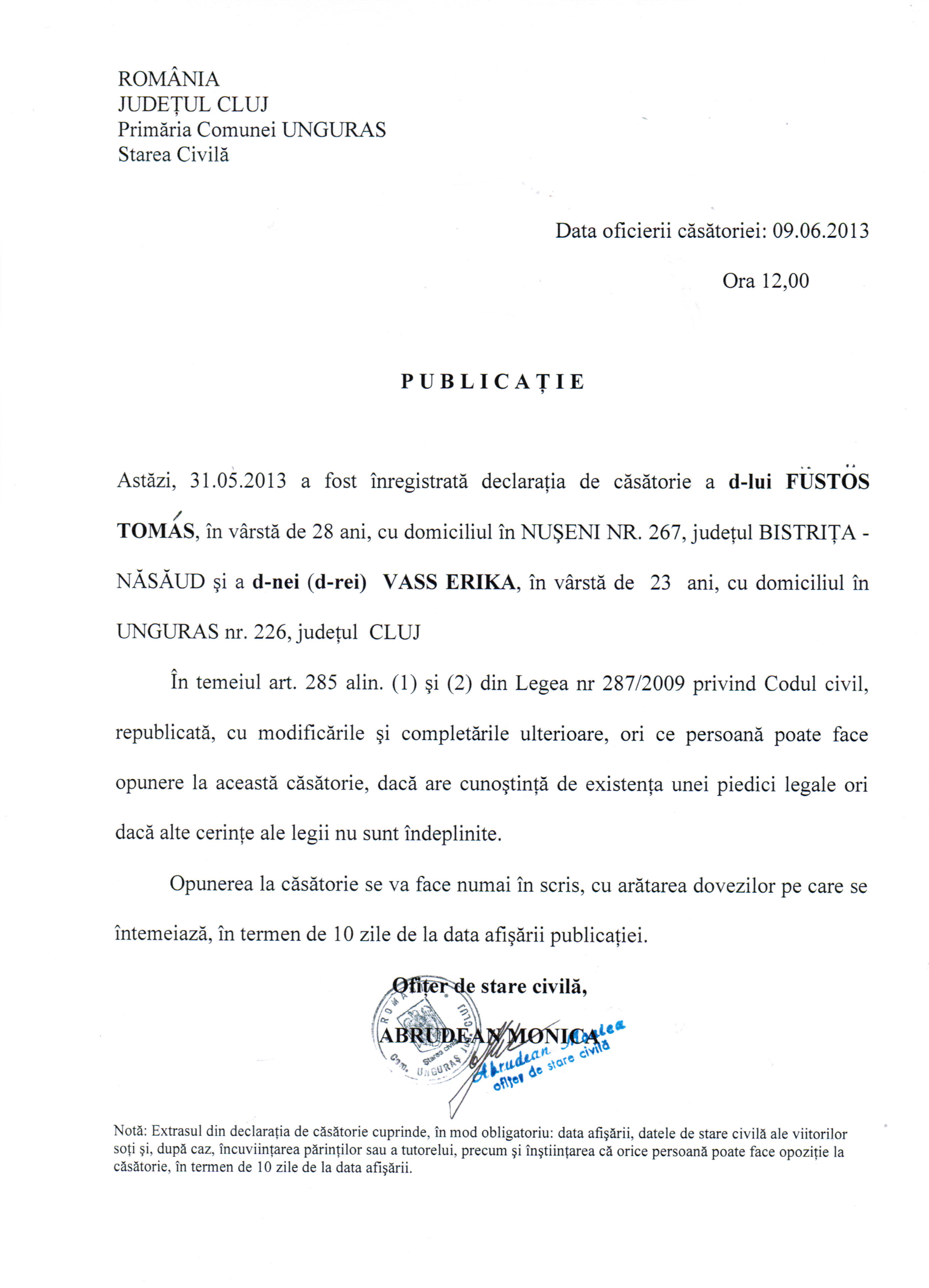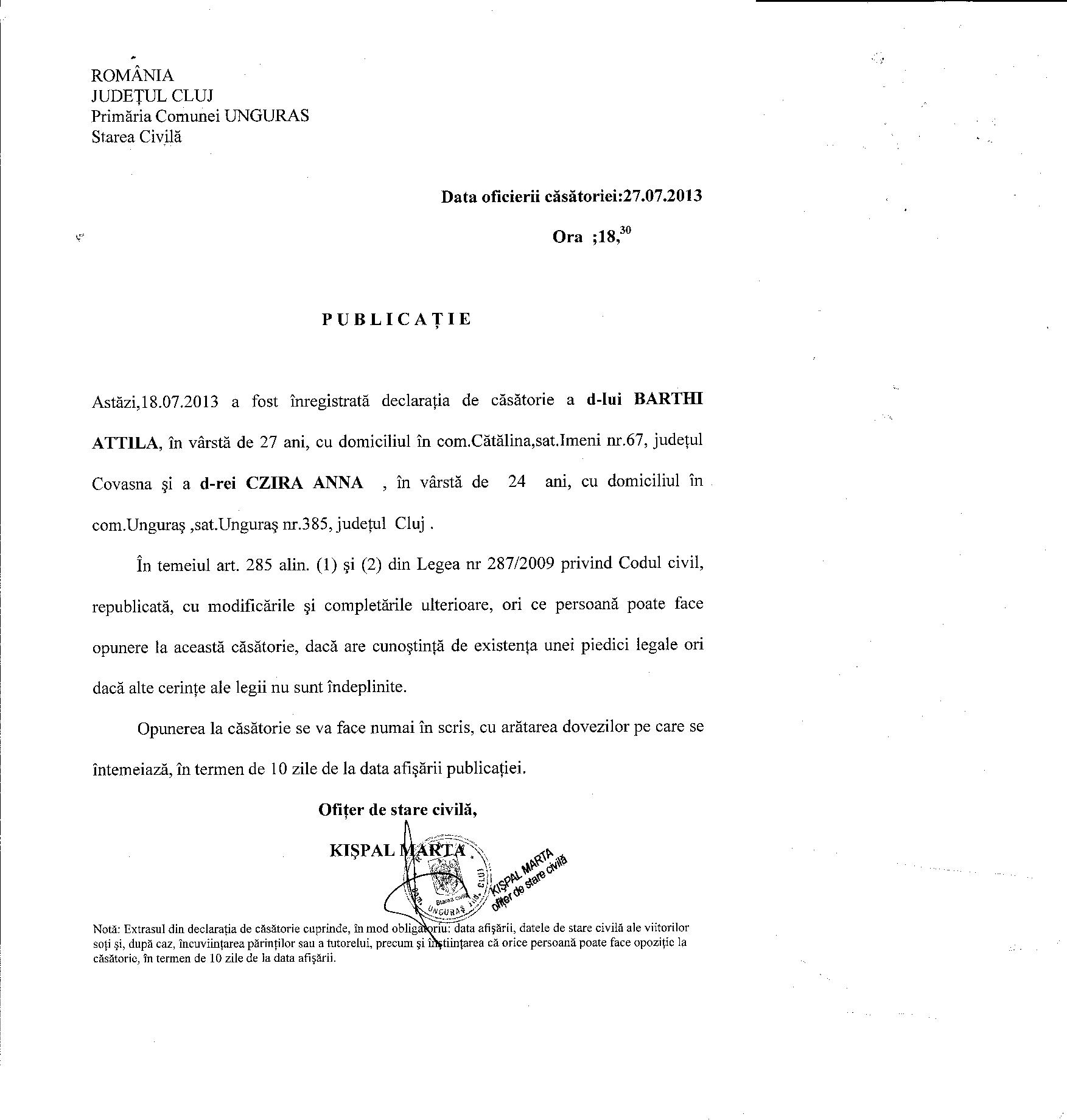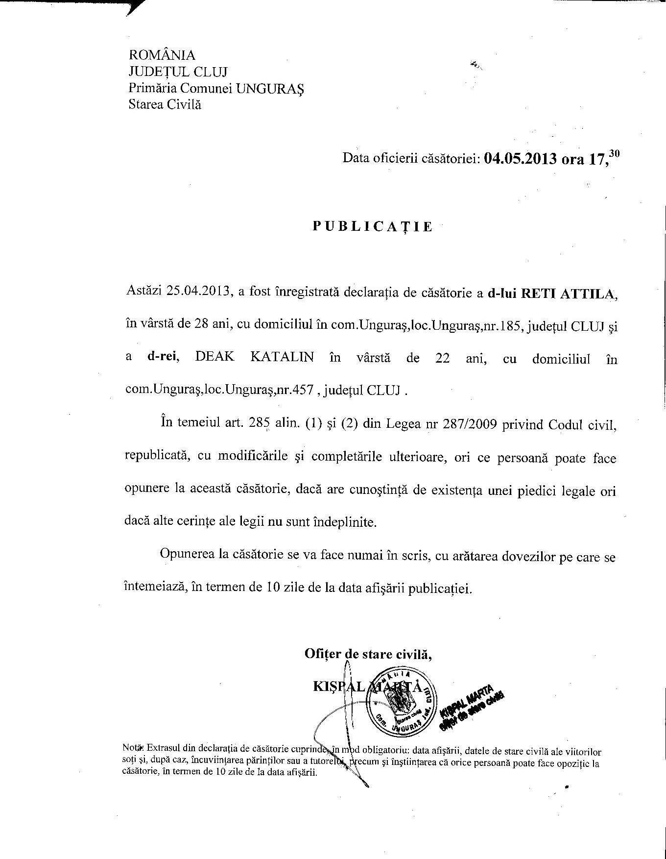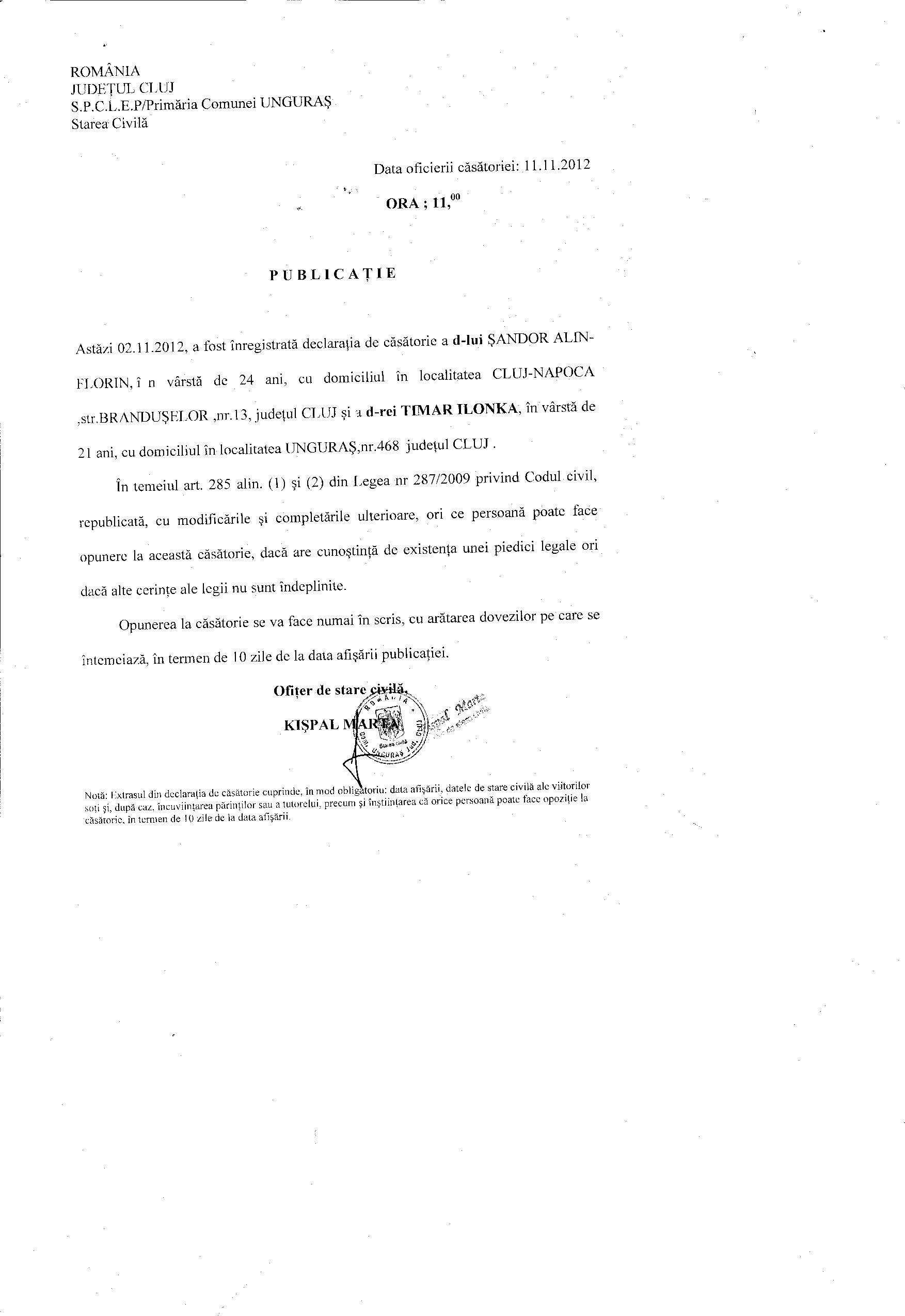 DUPA CASATORIE NUMELE SOTULUI VA FI SANDOR SI A SOTIEI VA FI TIMAR |